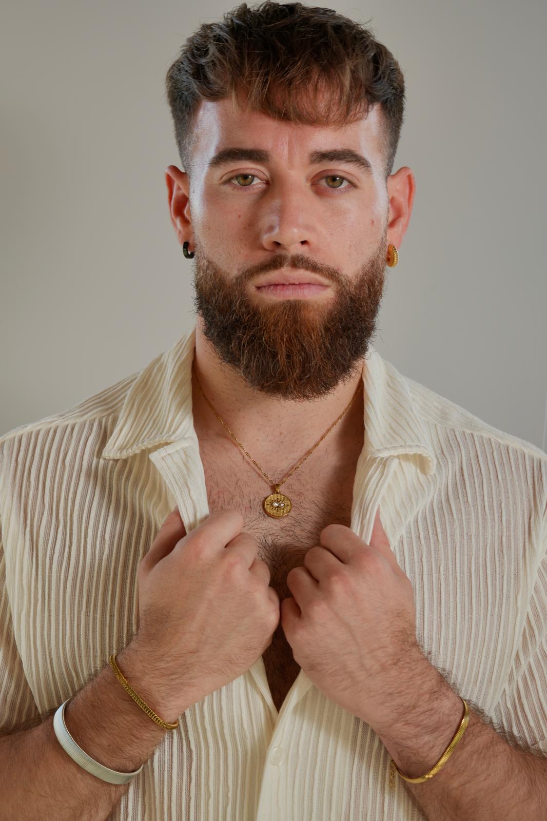 This 18K Gold PVD necklace is a masterpiece of craftsmanship, blending tradition and modern elegance. The charm features a marquise-cut zirconia stone, set within a delicately textured circular pen...