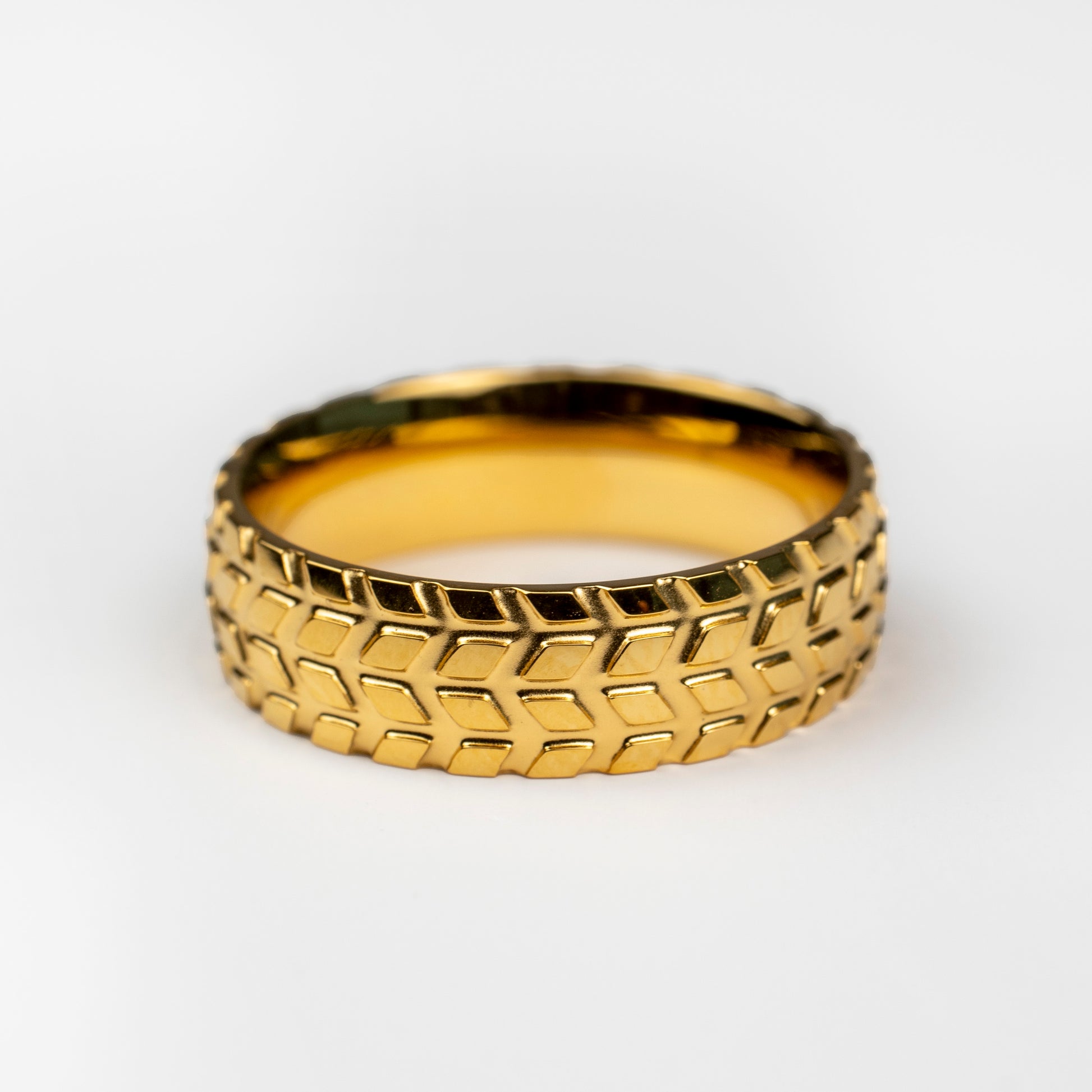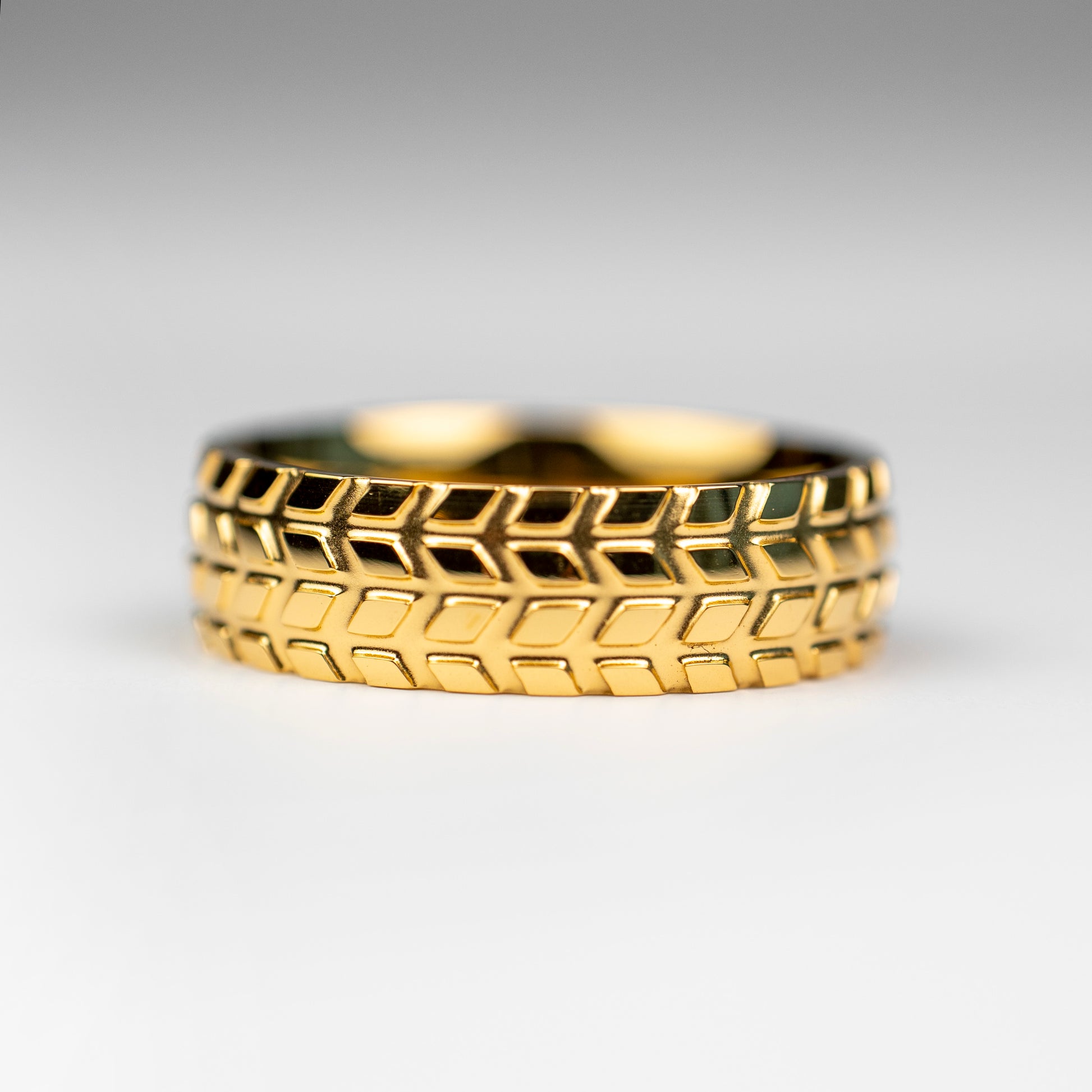 The Orbit Gold Band is skillfully crafted from stainless steel and boasts a luxurious gold-tone finish. Its artistic design features smooth, rounded protrusions resembling droplets, creating an abs...