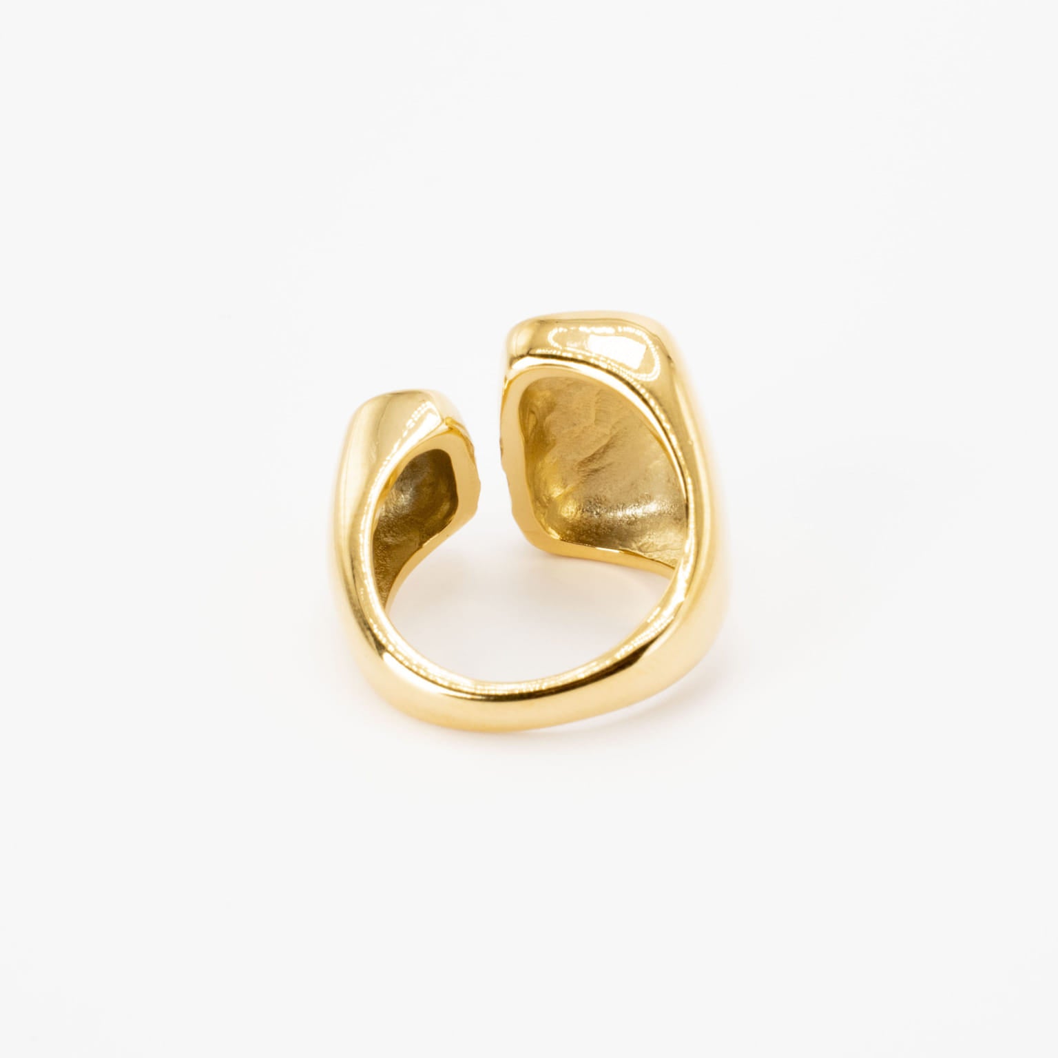 Wear it solo as a statement ring or layer it with slender gold bands to add dimension. It pairs effortlessly with structured blazers and silk tops, enhancing both polished and edgy aesthetics. Perfect for those who love timeless shapes with a fashion-forward twist.