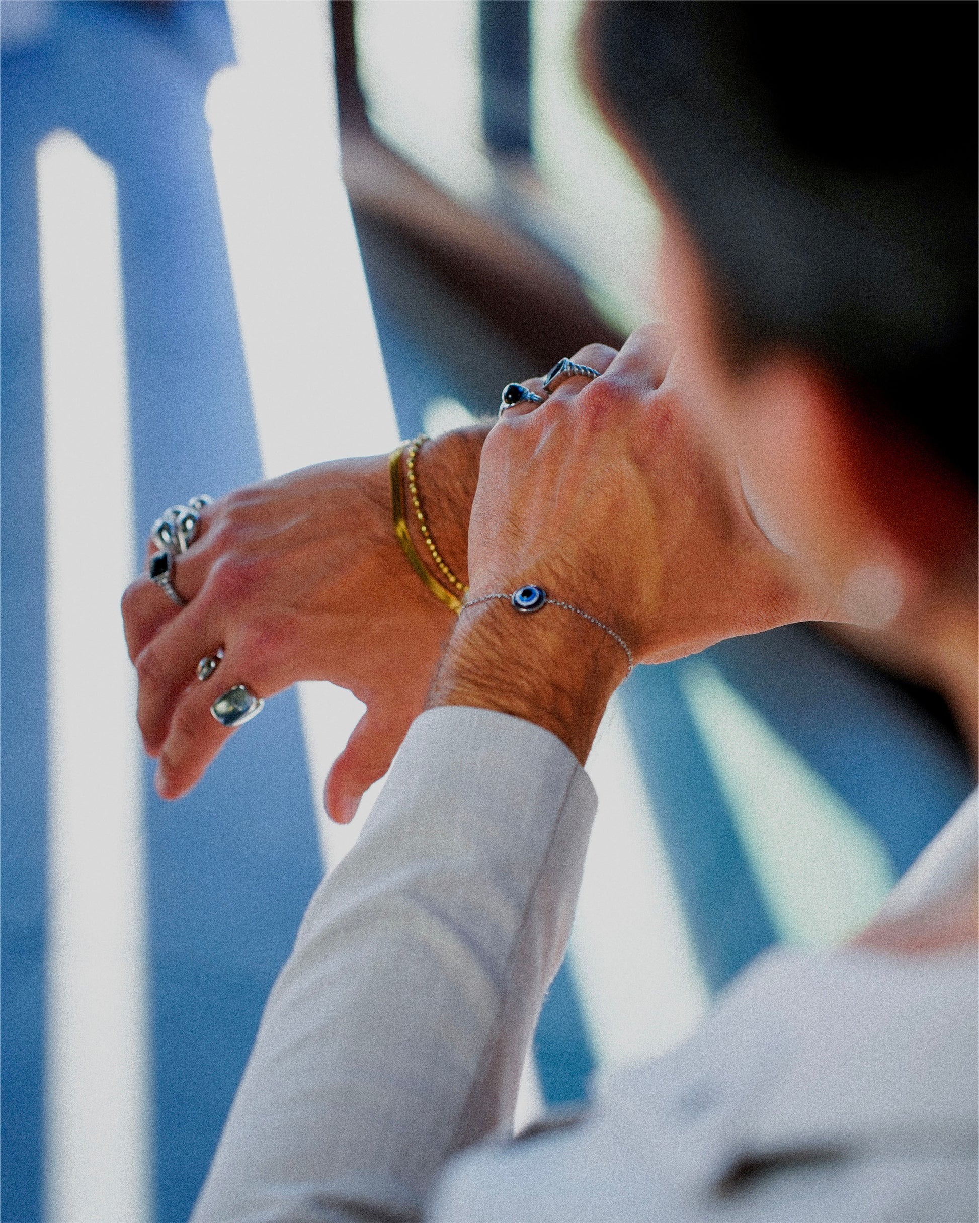 An elegant and meaningful bracelet featuring the traditional "evil eye" charm, symbolizing protection and positive energy. This delicate silver chain enhances the charm’s timeless appeal, making it...