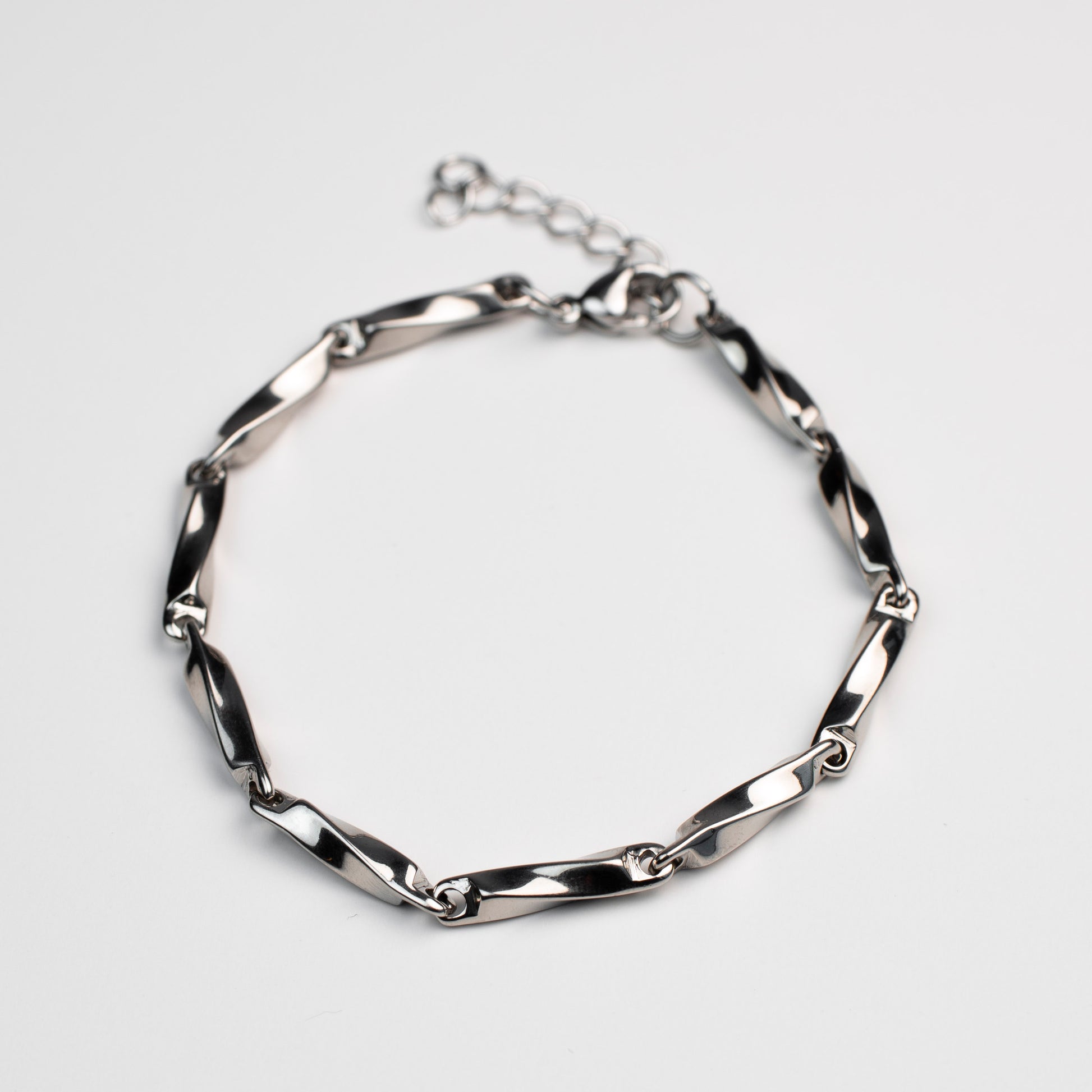 A beautifully crafted bracelet featuring elongated, twisted silver links, offering a modern and sophisticated take on classic chain designs. This piece exudes effortless elegance with its unique in...