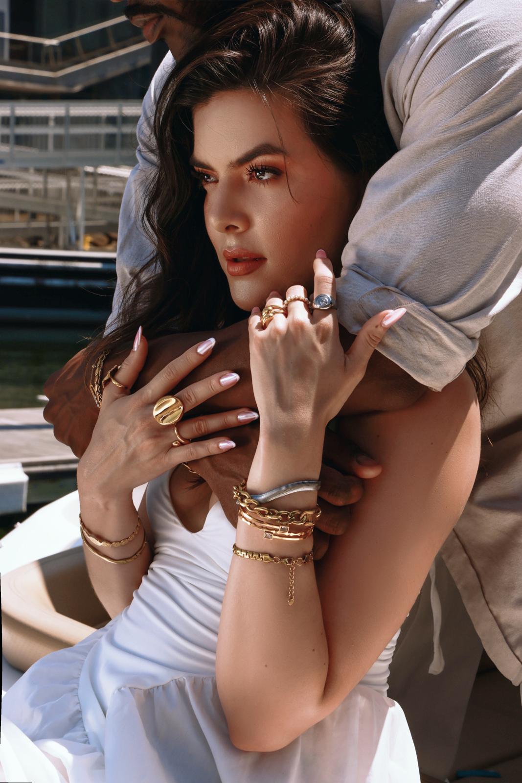 The Solar Crest Band is a stunning representation of the sun, crafted from high-quality stainless steel with a radiant 18K gold PVD finish. This elegant piece also comes in a silver variant, offeri...