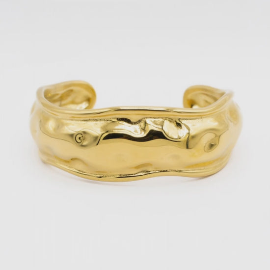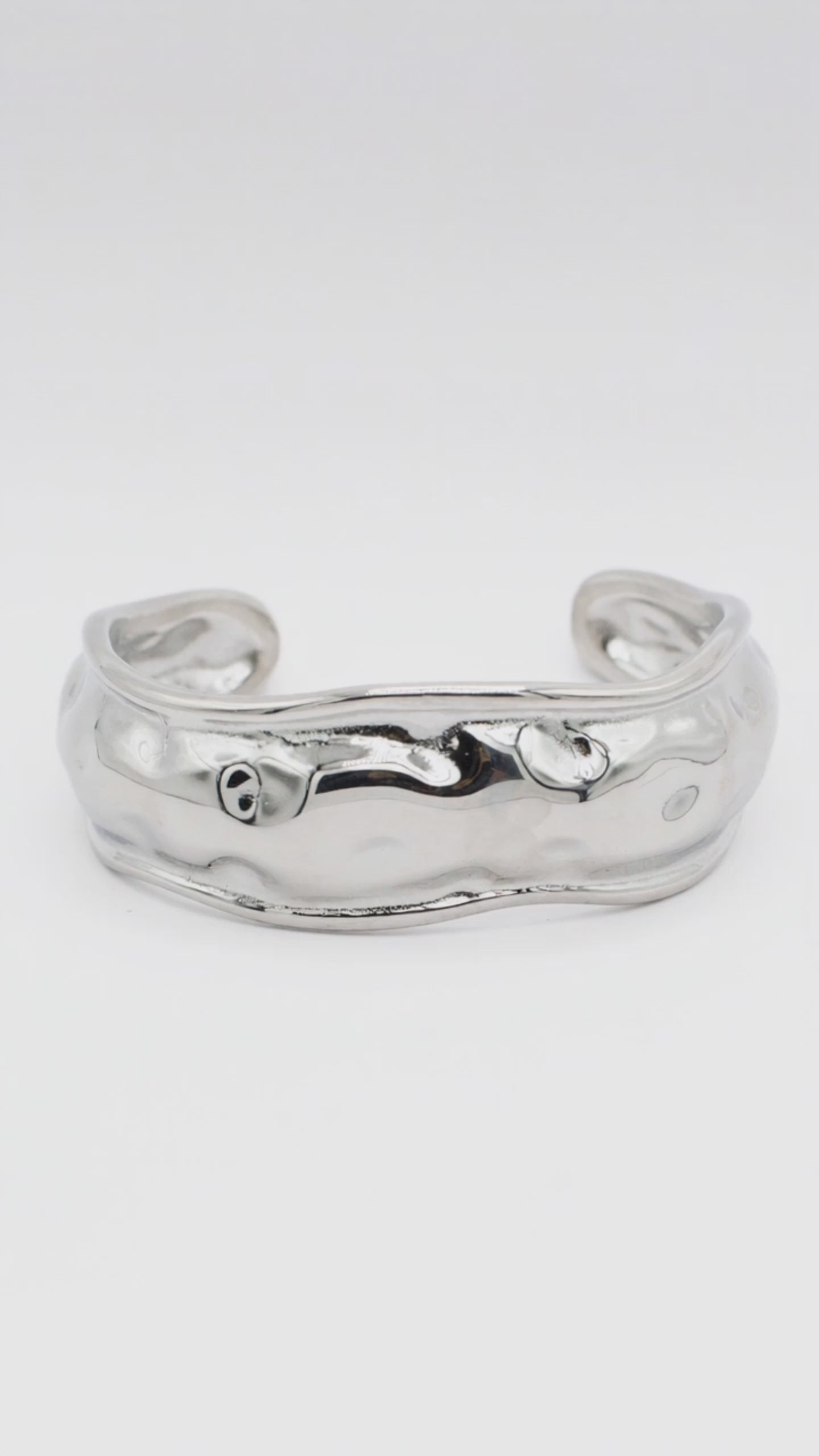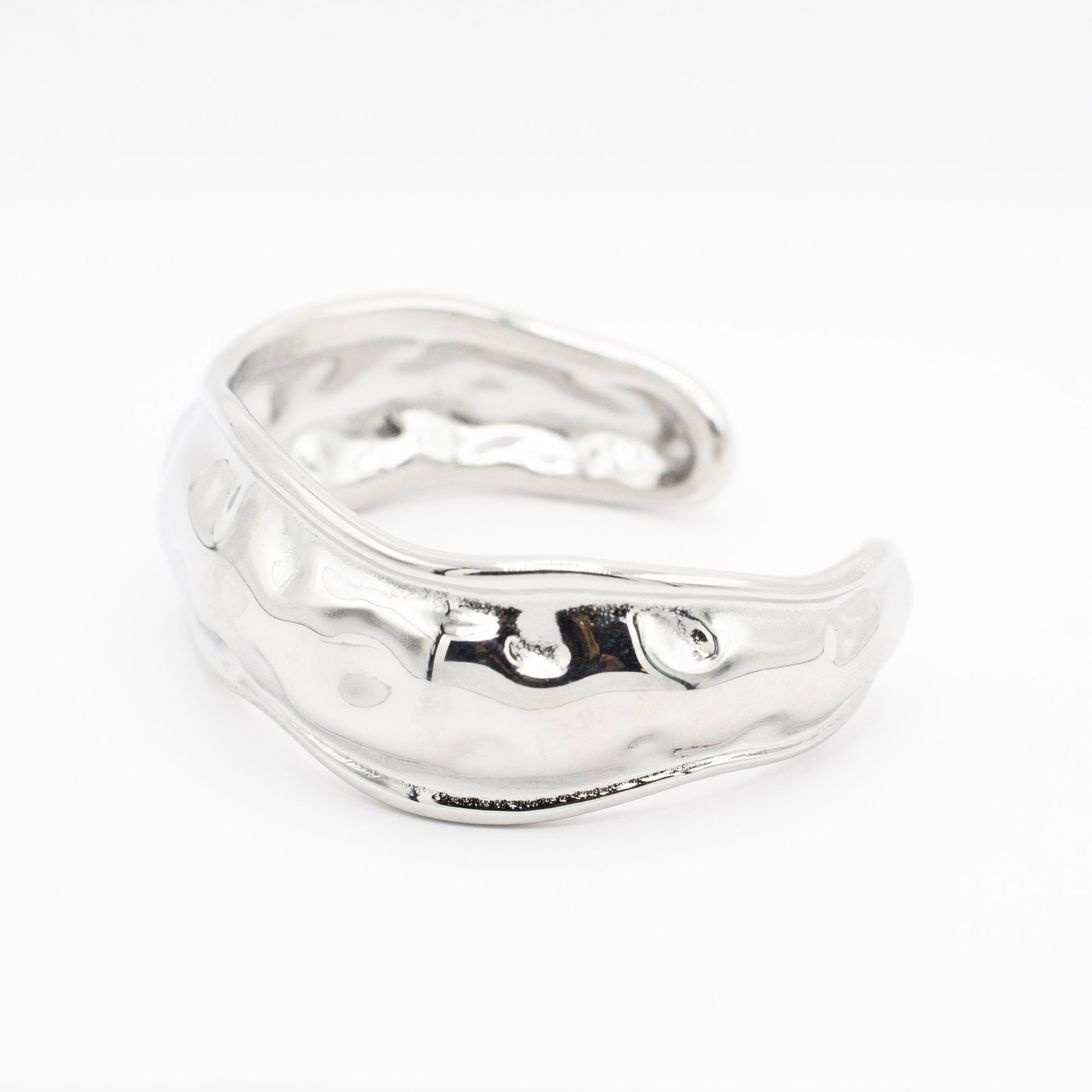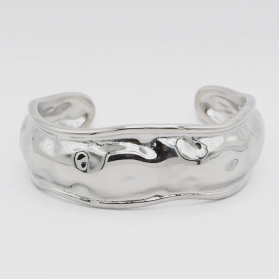The Magma Bangel Cuff is a masterclass in organic design, featuring a "molten metal" texture that ripples around the wrist like liquid silver. Its bold, chunky silhouette makes it an undeniable statement piece, yet its undulating curves give it a soft, sculptural elegance that feels completely natural.